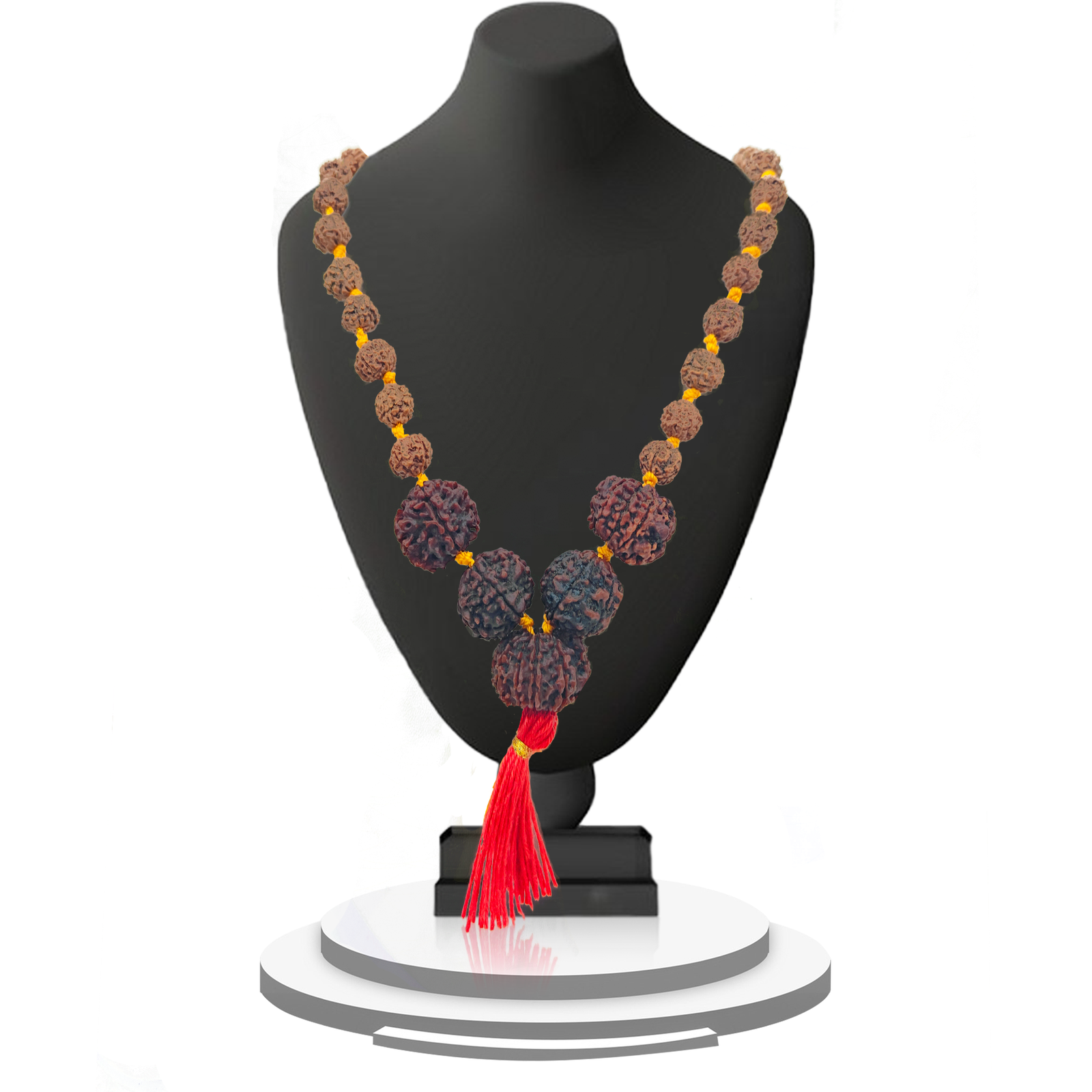 This mala is the combination of  3 mukhi, 4 mukhi, 5 mukhi,11 mukhi rudraksha.The Hanuman Mala is believed to imbue the wearer with the strength and courage of Lord Hanuman, helping to overcome physical and mental challenges. Lord Hanuman is revered as a protector, and his mala is said to offer safeguarding to the wearer, ensuring safety and security in all aspects of life.
